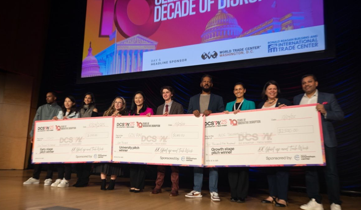 From this group, Luke’s startup GovRat was selected as one of two finalists to advance to the main Pitch Competition at DC Startup & Tech Week. The final event took place on Friday, October 24, at the Ronald Reagan International Trade Center, where Luke presented GovRat on the main stage in front of judges including the DC Deputy Mayor for Economic and Planning, the head of the Virginia Chamber of Commerce, the founder of Cvent, and a venture capital executive.