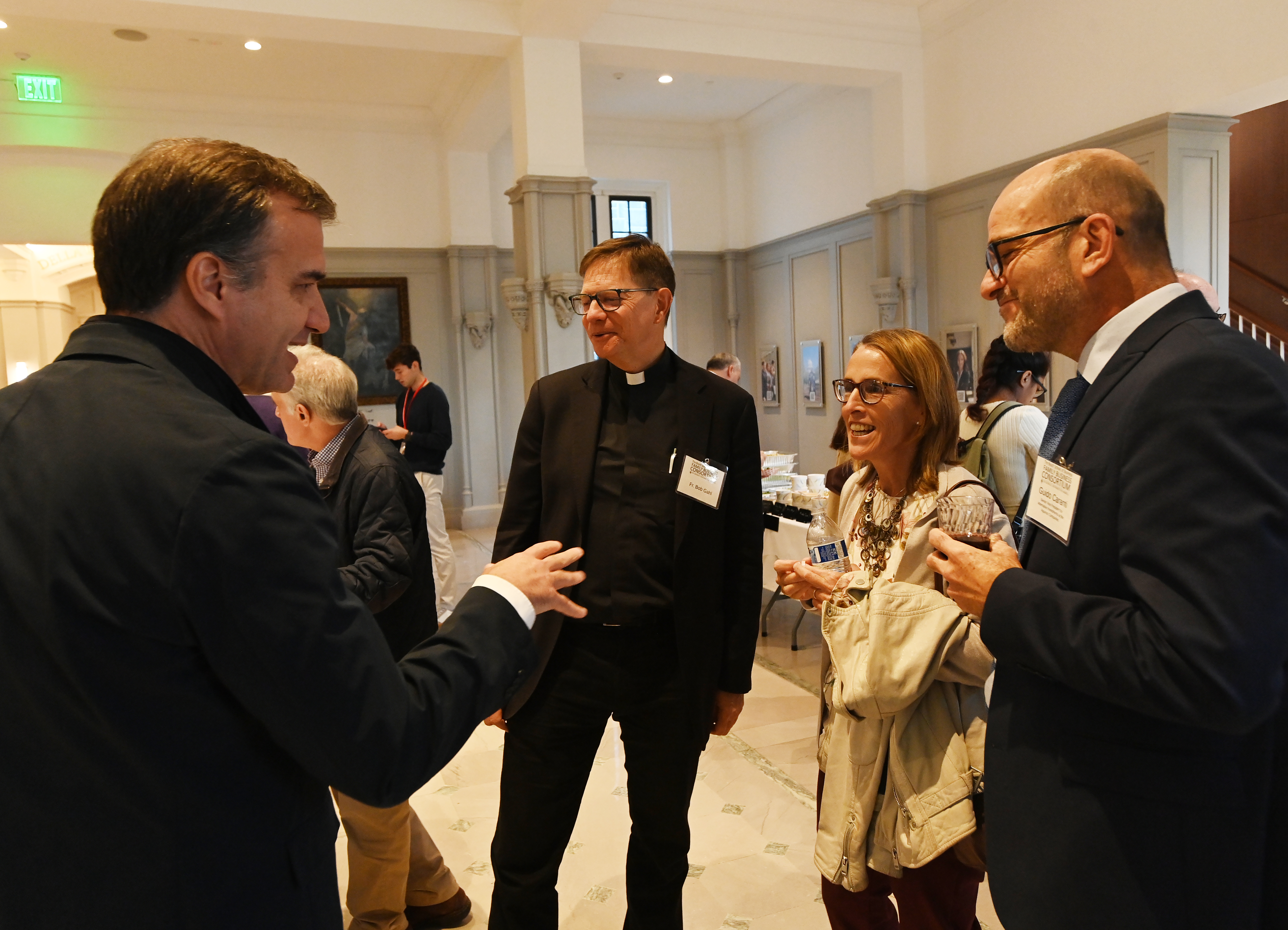 The day began with Mass and a consecration to St. Joseph in the St. Michael the Archangel Chapel located in Maloney Hall, followed by coffee and conversation as guests arrived. Throughout the day, attendees heard from a lineup of distinguished speakers, including Francis Rooney, Chairman of Rooney Holdings and foreigner U.S. Ambassador to the Holy See; Frank and Joanna Anastasio of LGM Glass Designs; Duncan Taylor, Co-Founder and former CEO of TaylorMade; and Aurora Griffin, Managing Partner of LongeVC. A highlight of the afternoon was the Financial Capital Panel, featuring Guido Caranti of Aquinas Companies and Francisco Lara, Associate Director of the Family Business Consortium. Together, panelists explored strategies for sustaining both financial and family capital across generations. The event concluded with a reception, where attendees met and connected with alumni and shared reflections from the day.